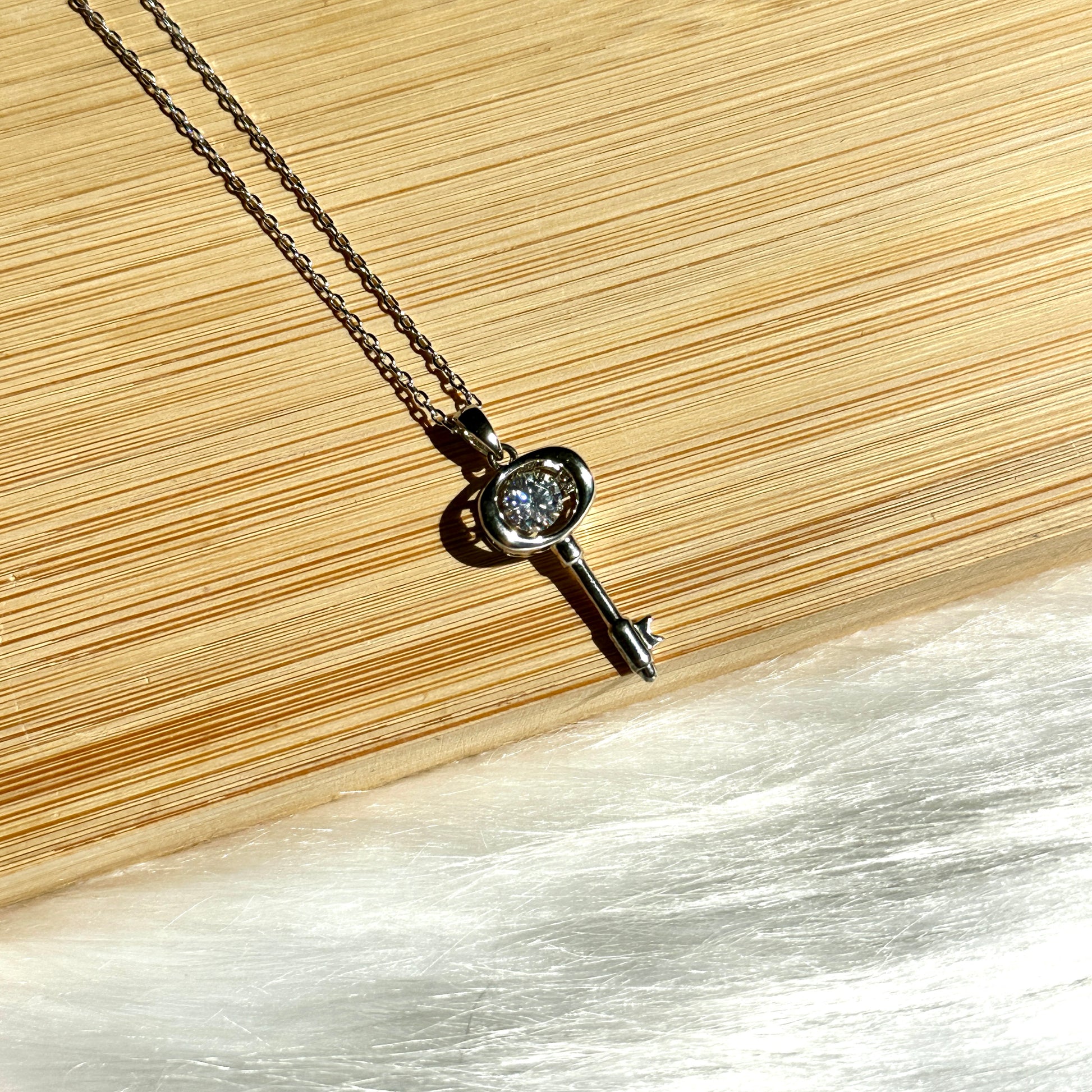 Key comes on a dainty cable chain with adjustable size and lobster style clasp. Packaged in a beautiful blue satin ring box, and comes with a GRA Certificate of Authenticity.